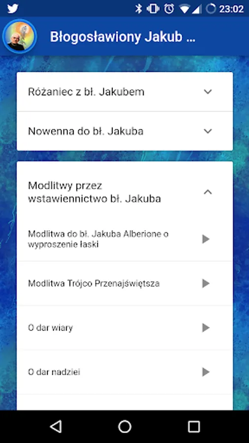 The application contains a rich collection of prayers to listen to. Some of them are: