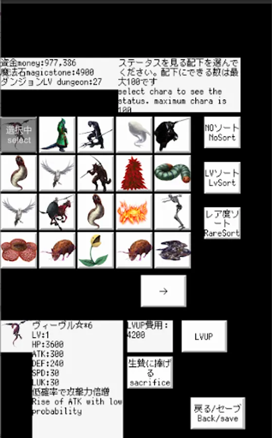・Dungeon LV: Increase the map level or raise the wall map to another map. As dungeon LV goes up you can create more types of subordinate and enemies become stronger