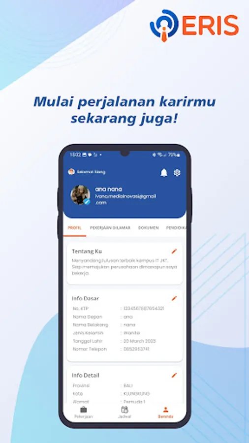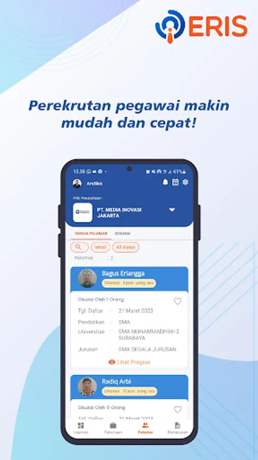 ERIS is a virtual product that can help HRD in the recruitment process to make it faster, more effective, efficient and systemized. Some of ERIS' excellent features are Application Bookmark, Interview Toolkit, Android Apps, and Barcodes. Not only that, ERIS can also be synchronized with EATS where after the recruitment process is complete, you can input employee data received and control attendance to payroll your employees easily.