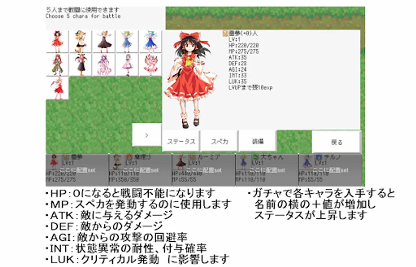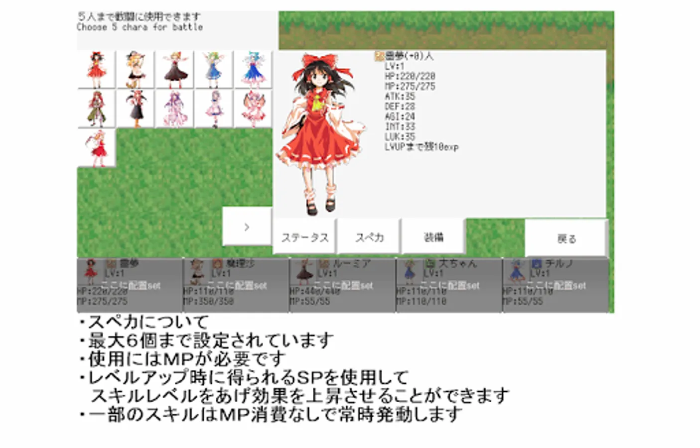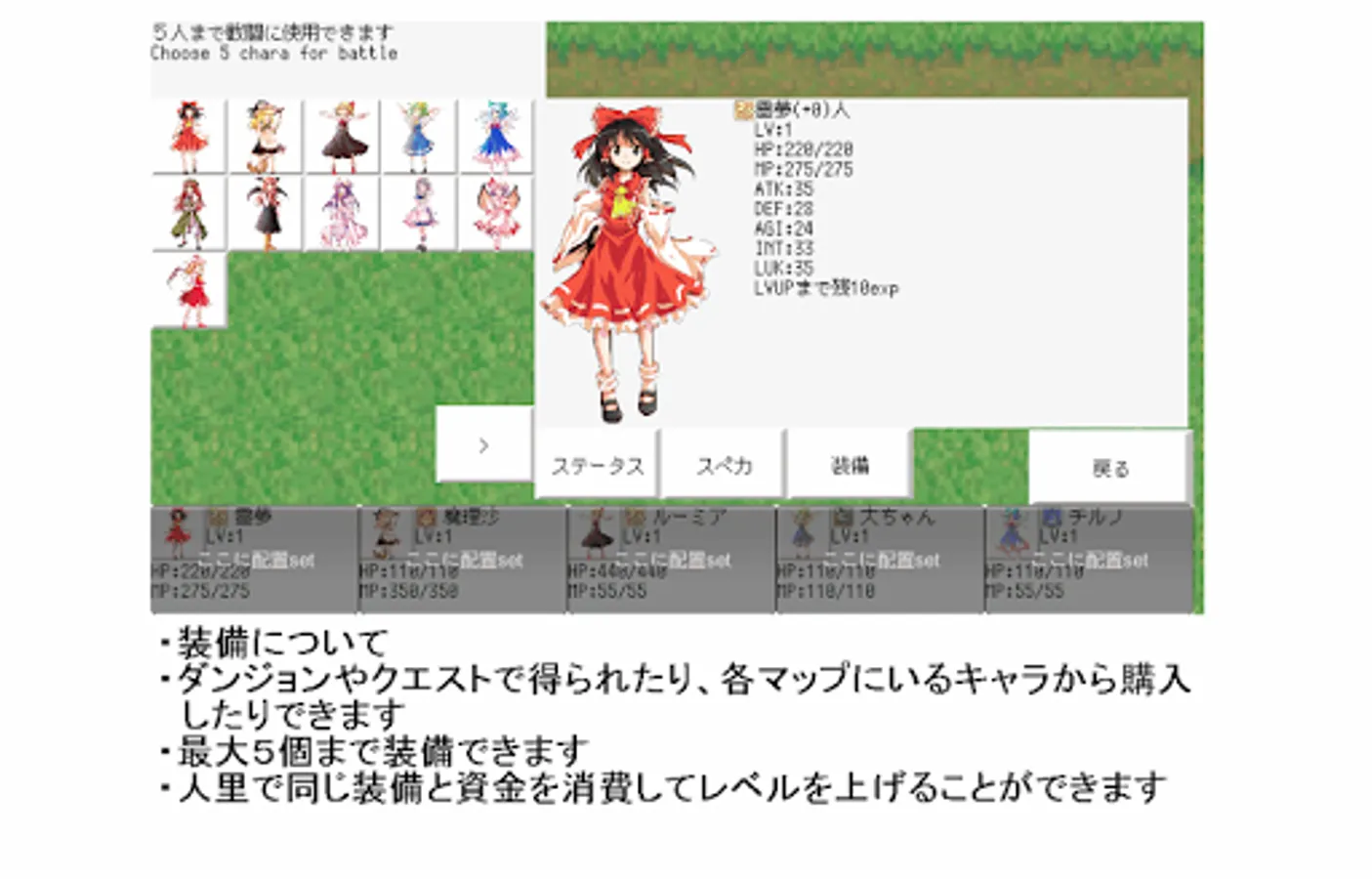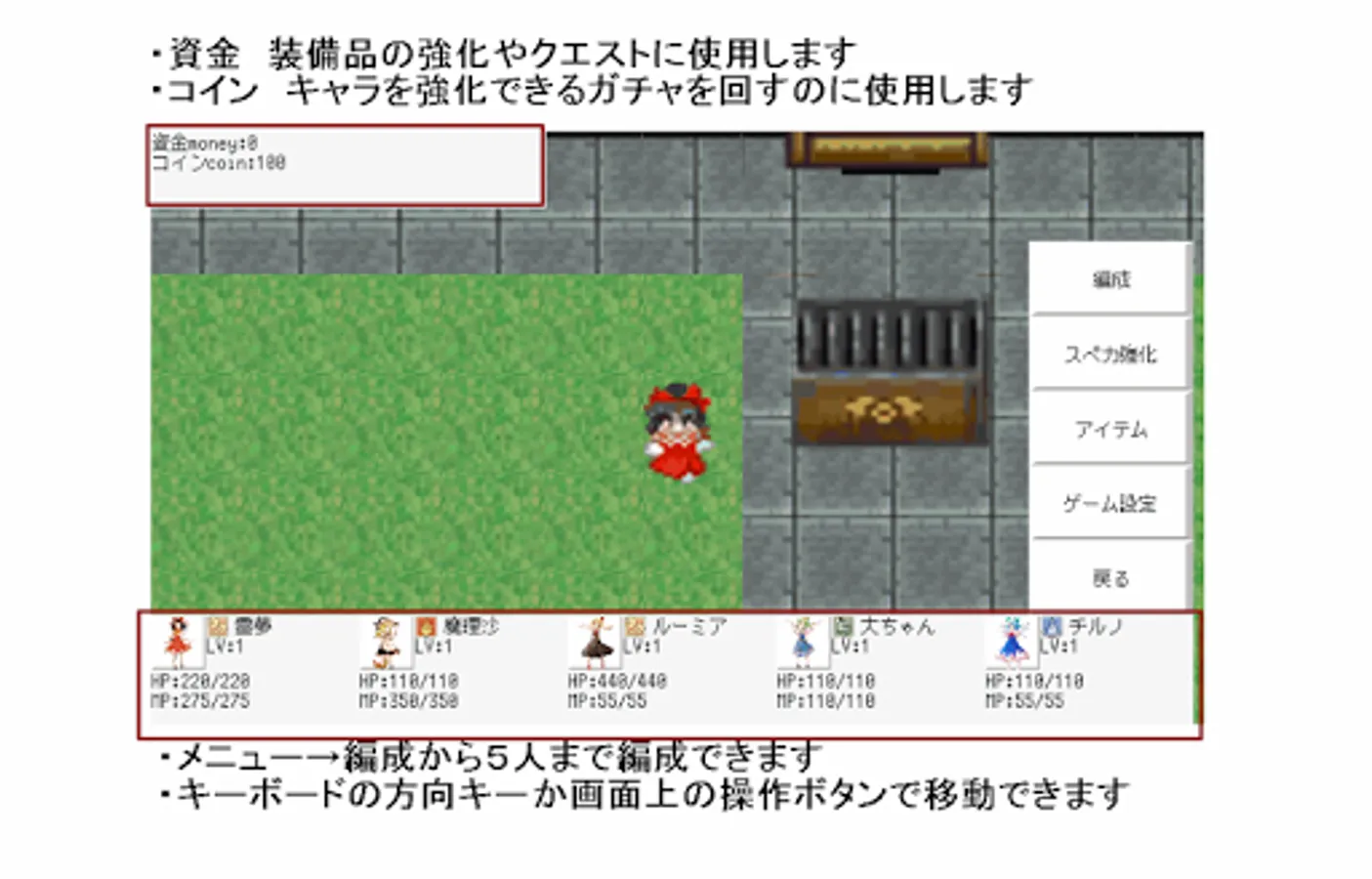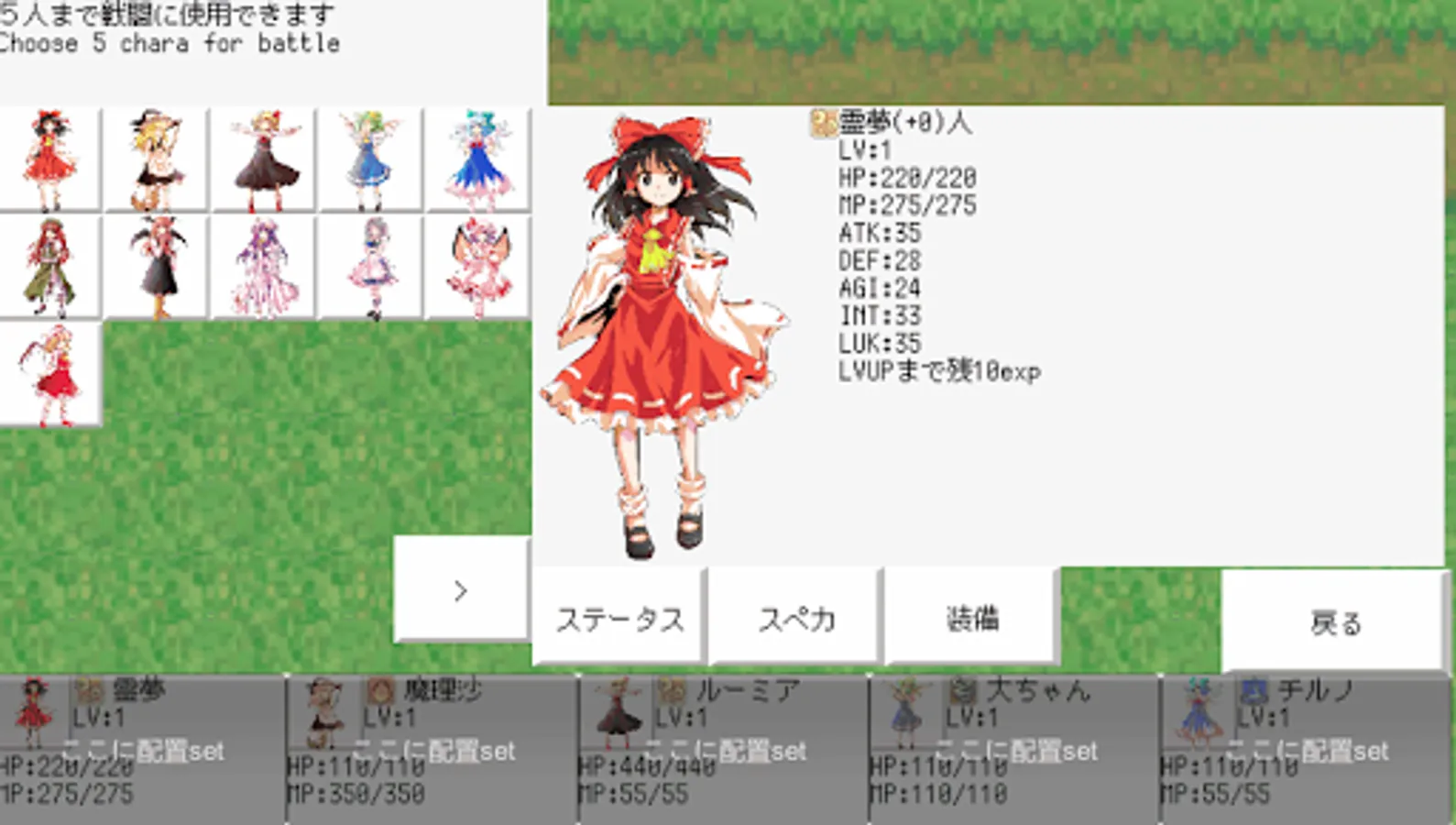 Places to go: Hakurei Shrine, village, magical forest, foggy lake, Scarlet Devil Mansion,