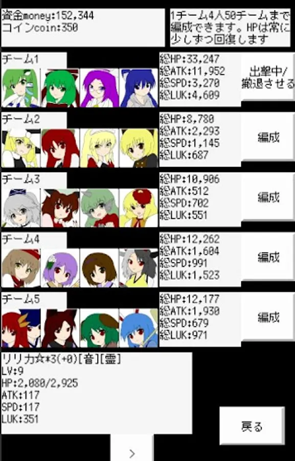 ・ Battles will take place with the team's total status