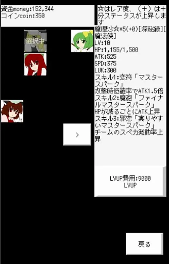 ・ If you get the same character, (+) will increase and your status will increase.