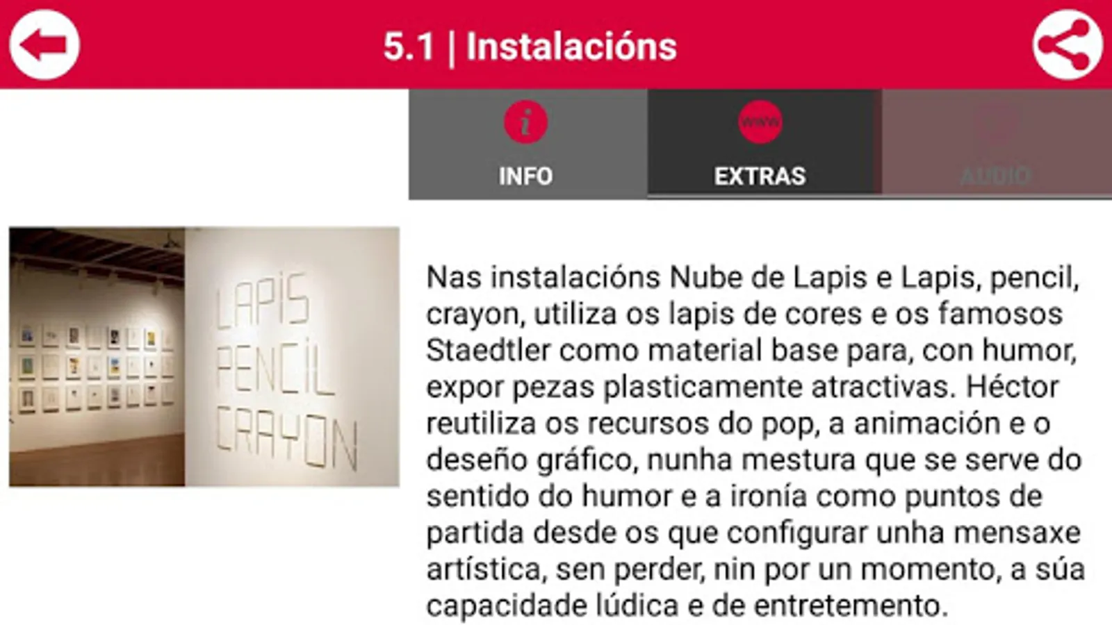 The application allows you to consult all information about MiiC, at first Mostra Internacional de Ilustracion Contemporánea de Galicia. Or your localization engine determines at what point you are or visitor inside the showroom, amassing information about works of art or more nearby points of interest. In addition, it offers additional content in the form of audio, video or links, enriching the visit. Or visitor will also have practical information, such as route to check elevators, toilets and emergency room.