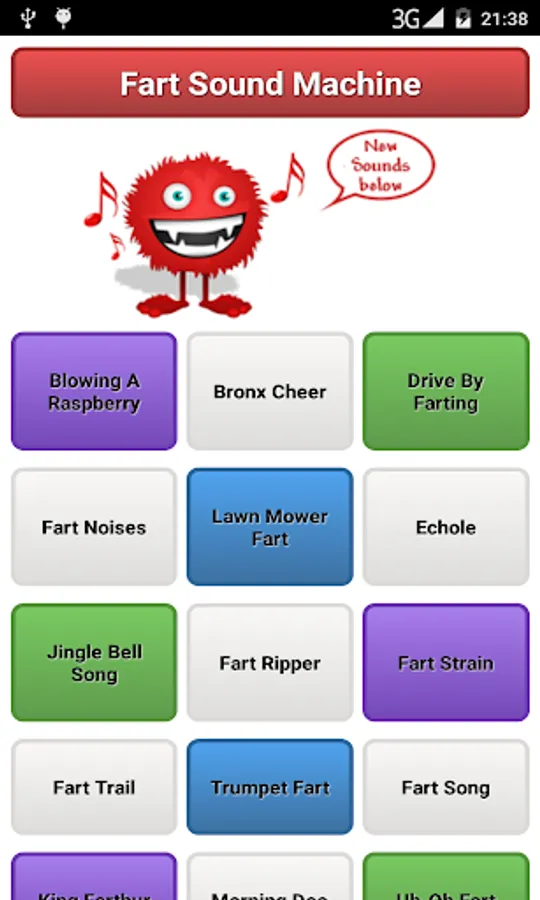 Think of all the possibilities! You are sitting somewhere in a public place and the person next to you doesn't think you are a man enough to fart there. Truth to be told, you aren't. It's embarrassing to gas in public. But with this Amazing Fart Sounds app you don't have to worry, because this app will do everything for you. Just start the app, use soundboard or Fart Time Bomb and surprise them. Meanwhile you can play some games. Yaaay!