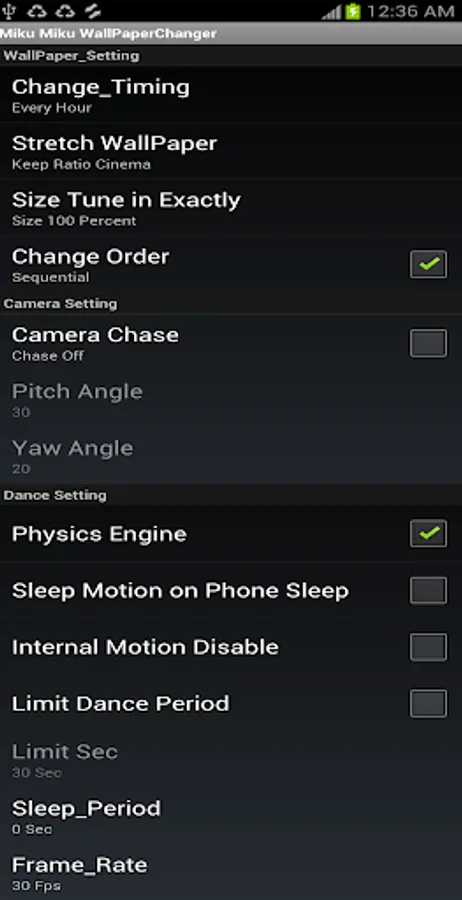 ・そのままインストール、壁紙設定でも、内蔵のモデル、モーション、壁紙で動作します。