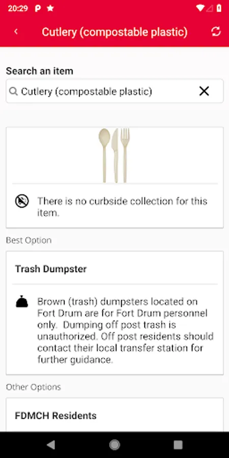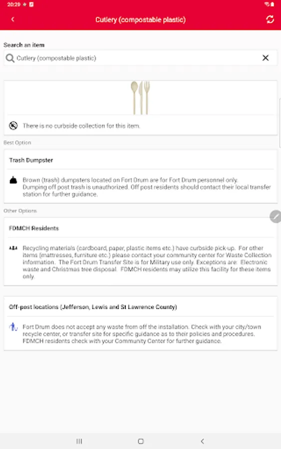 Search for waste materials to learn how they can be recycled, composted, or disposed of, in Fort Drum NY.