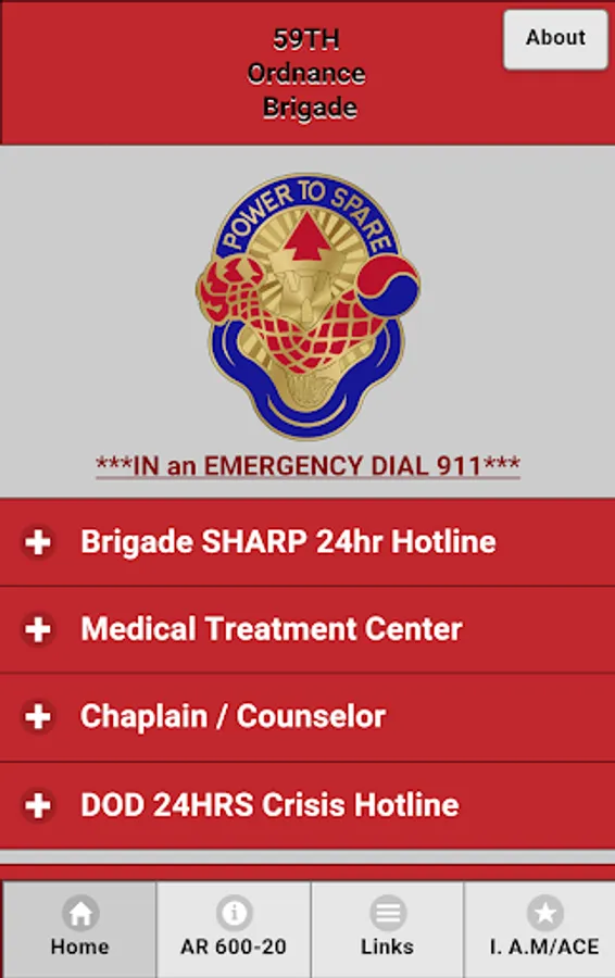 The 59th Ordnance Brigade App is for the Soldiers, Civilians and Dependents of 59th Ordnance Brigade in order for them to have the necessary tool for SHARP, Suicide Prevention, Chaplain, and the Links necessary to contact those agencies for more information. The app will aide in informing personnel about the definition of sexual harassment and sexual assault, and the reporting procedures for both. The app is also to inform personnel who to report their assault or harassment to, if they chose to report. The app is a great tool and form of communication when it comes to getting the attention of young Soldiers because they are more in tune to electronic devices compare to a business size card with information on there, that can be easy loss or destroyed.