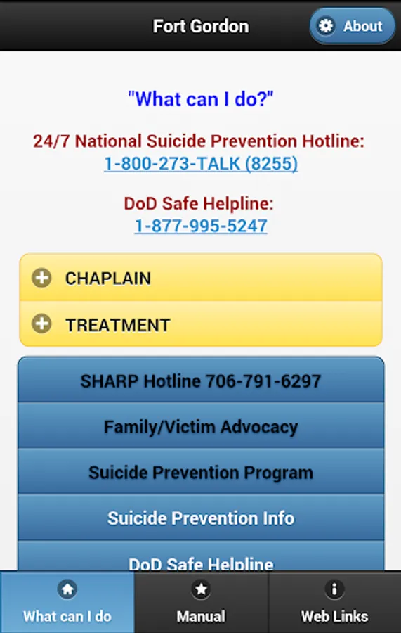 This app is to support the TRADOC Sexual Harassment/Assault Response and Prevention (SHARP) campaign plan which is designed to reduce with the goal of eliminating sexual harassment and sexual assault from our ranks. This is one of many initiatives developed to ensure that every member of our TRADOC family serves in a safe environment, free from sexual harassment and sexual assault.