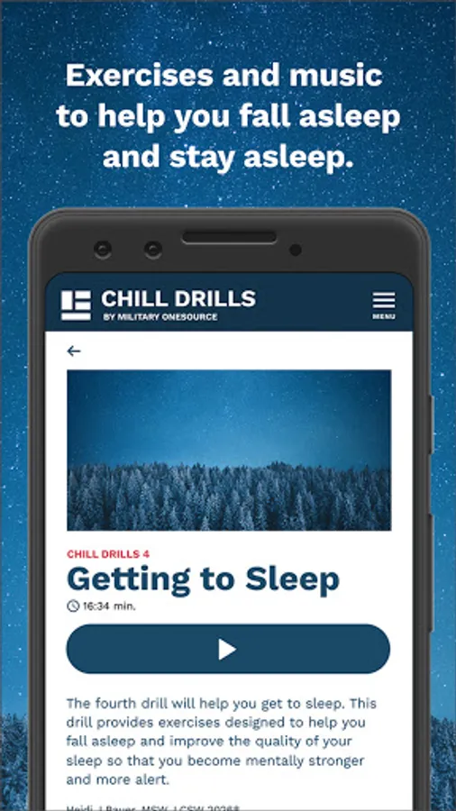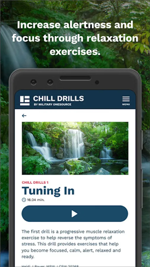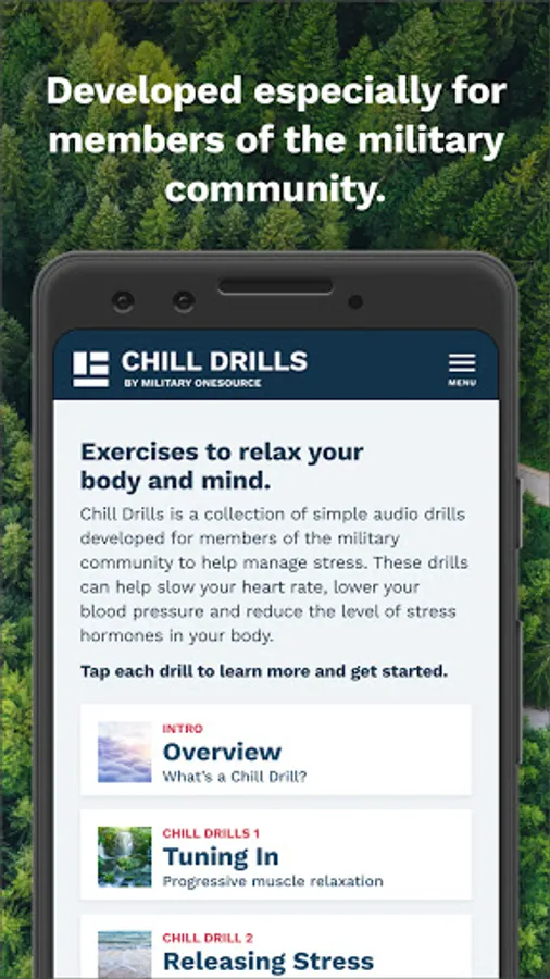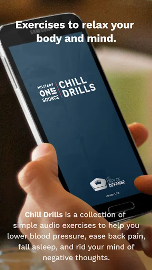 Chill Drills by Military OneSource is part of a family of apps from the Defense Department and Military Community and Family Policy. These apps support service members from the Army, Navy, Marine Corps, Air Force, Coast Guard, National Guard and Reserves, their spouses, immediate family members, survivors and other members of the military community.