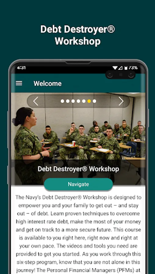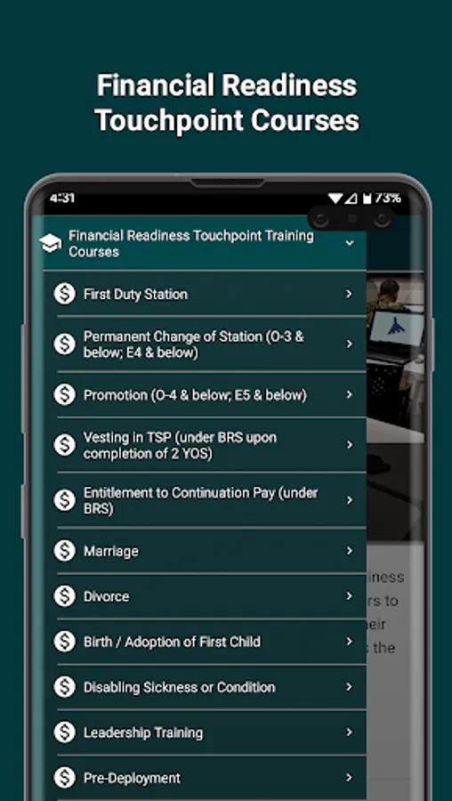 The FY16 National Defense Authorization Act (NDAA) made significant changes to the military retirement system and mandated that Navy personnel obtain financial literacy training at personal and professional touchpoints across the military lifecycle. This app supports that training via financial readiness touchpoint courses and a collection of in-app and online resources.