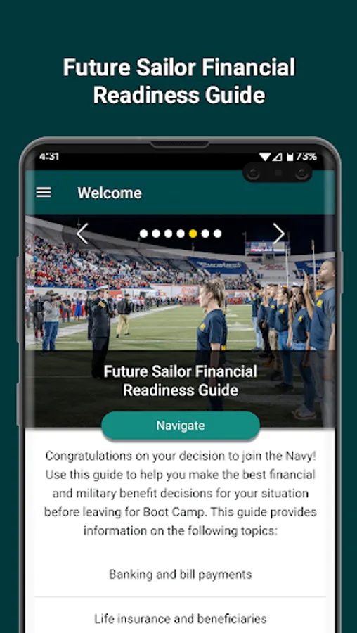 -- Future Sailor Financial Readiness Guide – helps future Sailors financially prepare before leaving for Boot Camp. Provides information on banking and bill payments, life insurance and beneficiaries, education and retirement benefits, and information for military spouses.