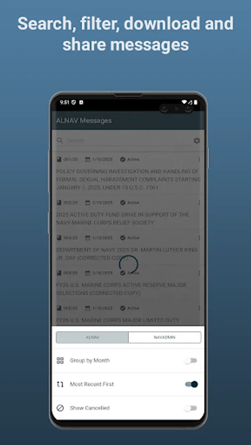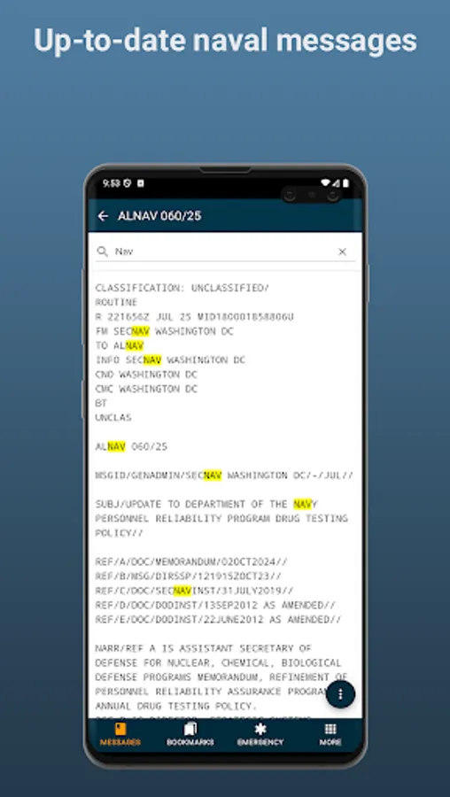 Developed at the request of Sailors across the US Navy, the MyNavy Messages app is the Navy’s official, free NAVADMIN and ALNAV message viewer. With the MyNavy Messages app, users can search, filter, download, and share the most up-to-date ALNAV and NAVADMIN messages. Users can access downloaded content anytime and anywhere.