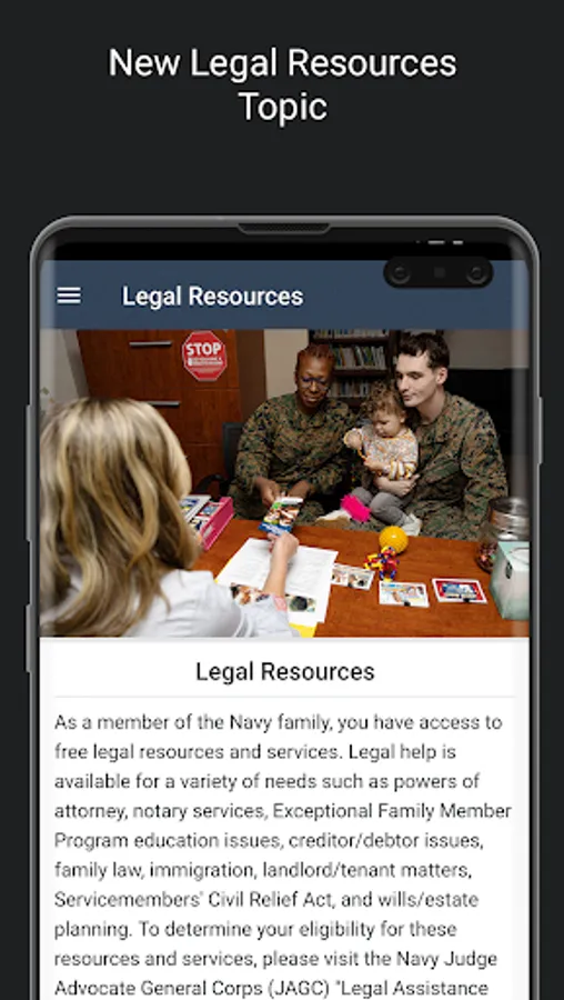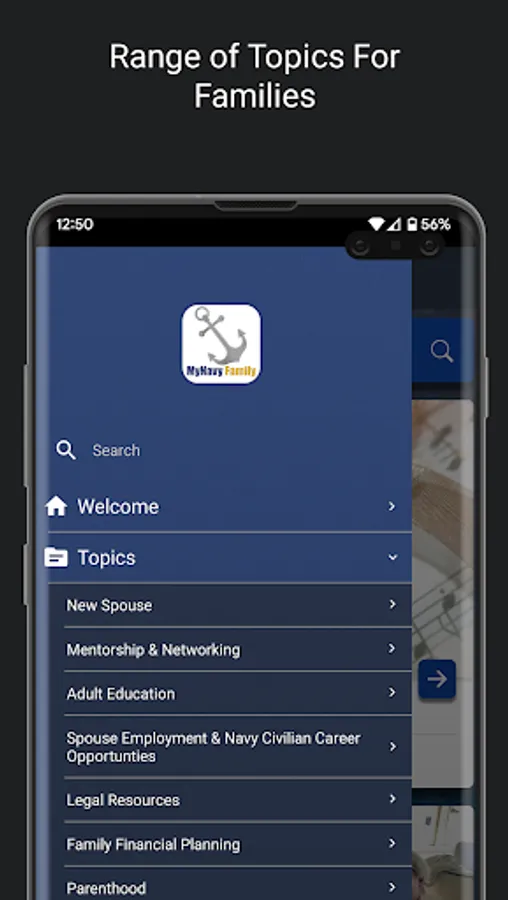 The MyNavy Family mobile application connects Navy spouses and families to information and resources to help them successfully navigate the complexities of life in a Navy family. It combines authoritative information from a wide range of websites into a single, convenient application. New resources and links continue to be added, like those for the COVID-19 pandemic.