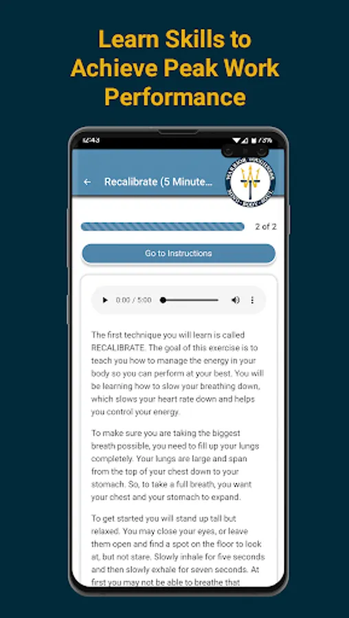 The Warrior Toughness app is an extension of the Warrior Toughness training program, which teaches Sailors techniques that allow them to perform at their peak in challenging circumstances. The app provides exercises and interactive worksheets based on proven sports-science methods. By building and using these skill sets regularly, Sailors will be able to perform at their highest level. This app is ideal for any Sailor who wants to build or refresh their Warrior Toughness skill set.