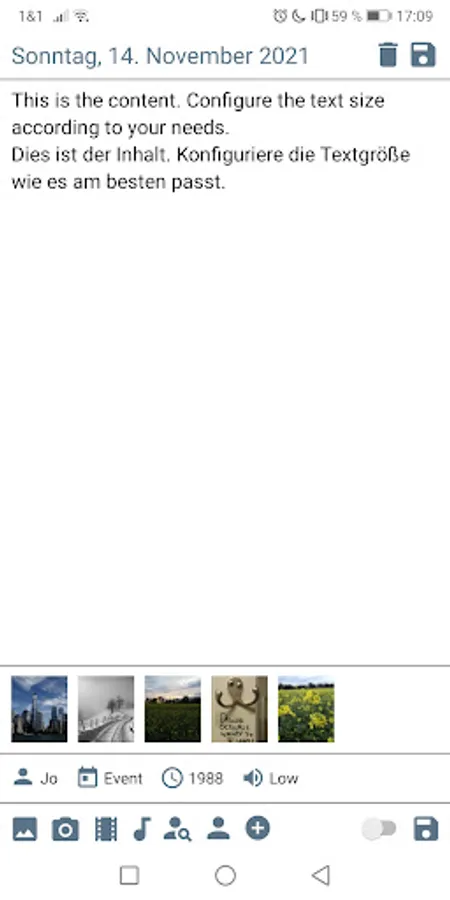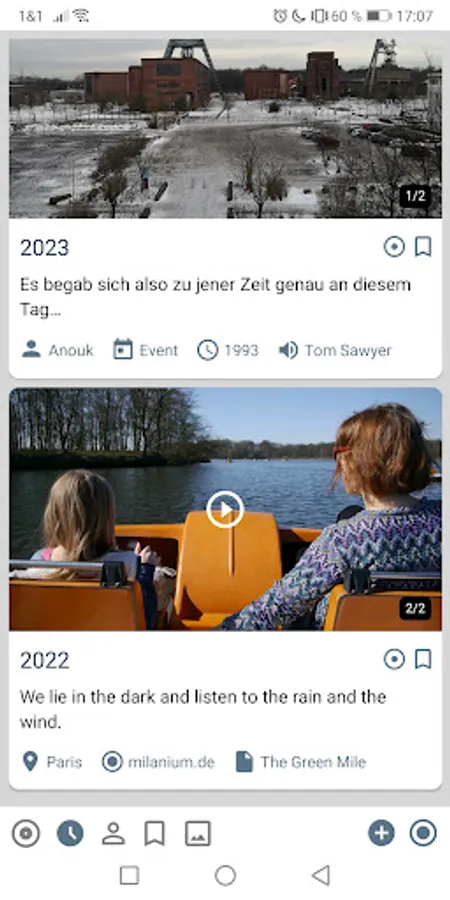 Record your memories and moments in texts, pictures, films, audios, locations etc.