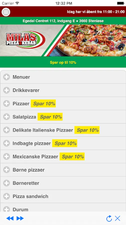 With Milas Pizza's web app, you can now order food directly from your phone. Milas Pizza in collaboration with Meal4U.dk got their own app for Food orders.