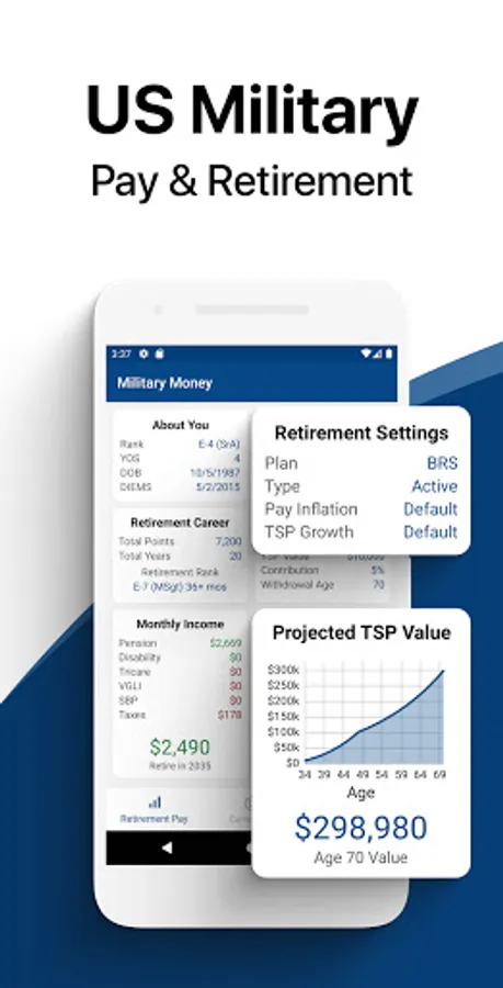 This app is based on the 2020 US Department of Defense Blended Retirement System (BRS) Calculator. Benefits are estimated and should be used for informational purposes only. Consult a professional for more accurate information.