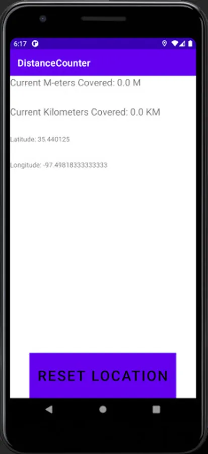 This application will obtain your starting location when you open it and then measure the distance you travel from the starting point (Where you opened the app first time or reset your location)