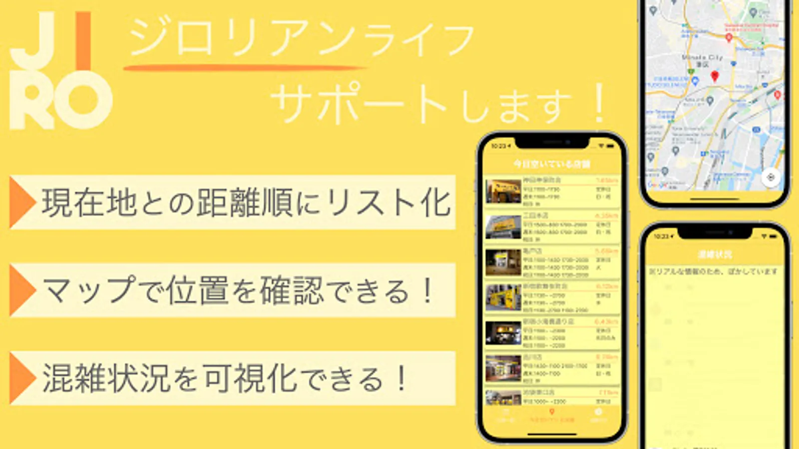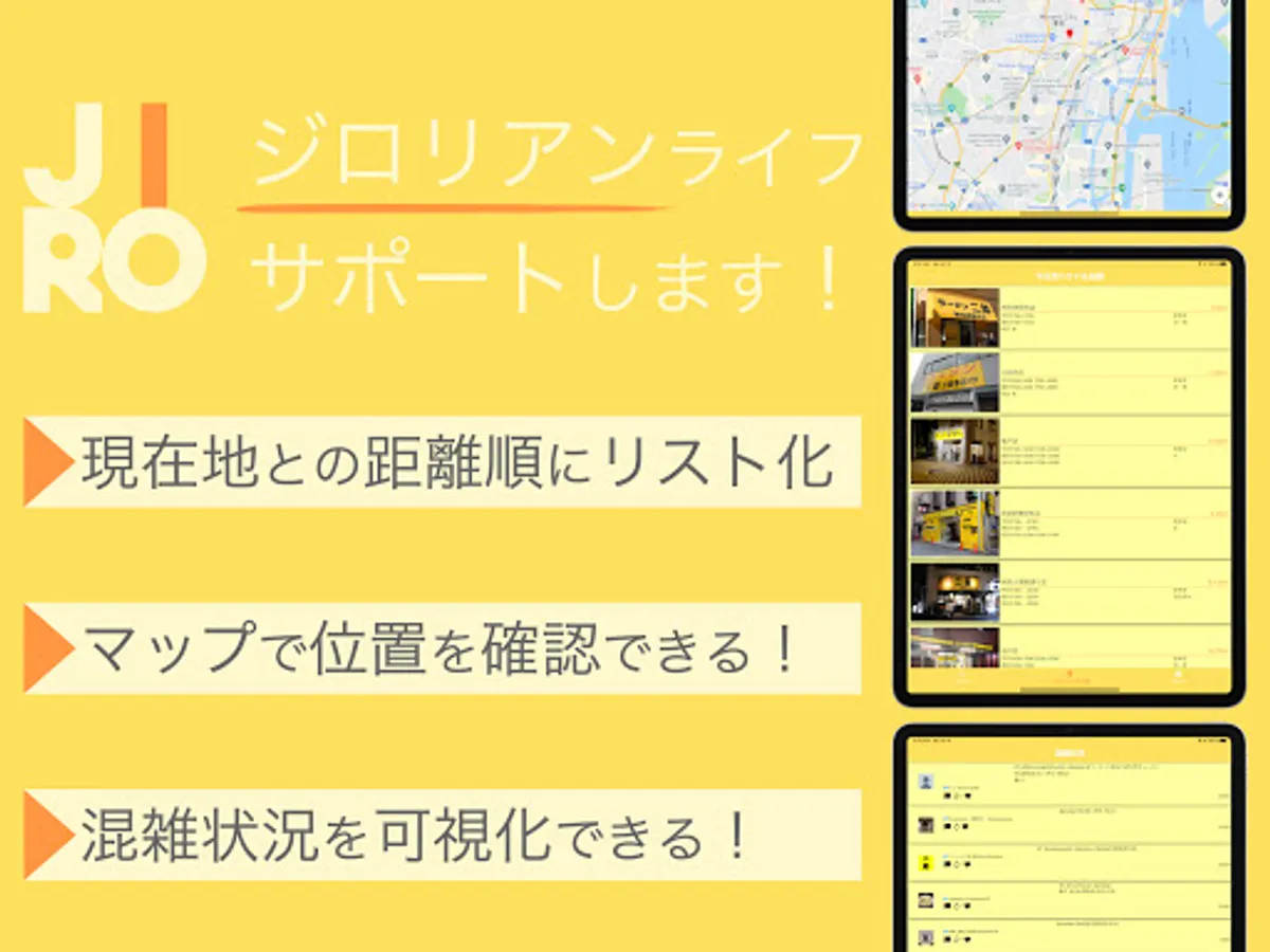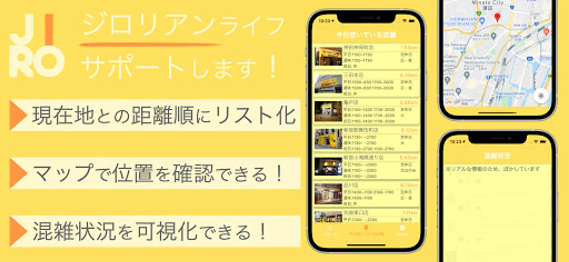 ① Jiro, which is open from your current location, can be displayed in order of proximity.