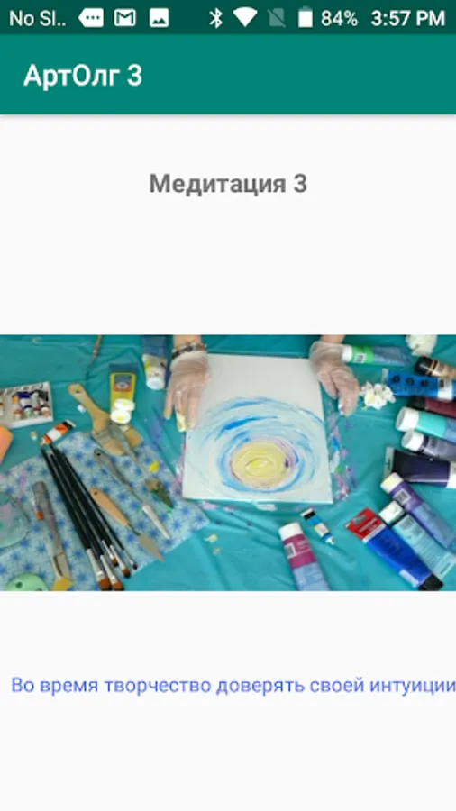 A master class of intuitive creativity under meditation is a type of Art-therapy. In this course, with my accompaniment, you'll awake for yourself Art therapist. This technique is very simple to start drawing, anyone who wants to open their inner world, realize hidden abilities, and expand consciousness can begin, even if you have never held a brush. You can also express and explore a variety of feelings and emotions, love, joy, happiness at a symbolic level in the creative process ... Intuitive painting will help you to get rid of the stereotypes of thinking that prevent you from simply living and rejoicing. The main goal of Art-therapy with your hands is to harmonize the mental state of the individual through the development of the ability to express through creativity. All you need is to trust yourself, your feelings, your own intuition in the creative process under meditation. Intuitive creativity involves complete freedom, nor any rules, canons. Meditation will contribute to your relaxation, and bypassing the intellect directly influencing the sphere of feelings, will fill you with positive emotions. Will contribute to the disclosure of your potential. And so, I invite you to chat with your subconscious on canvas.