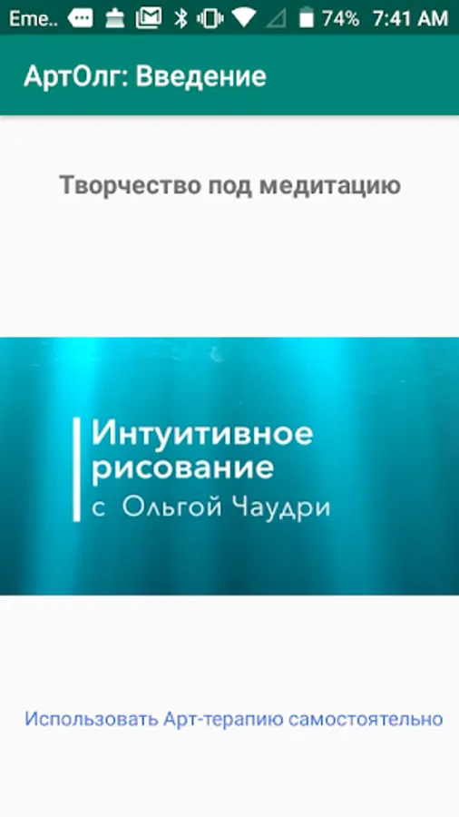 A master class of intuitive creativity under meditation is a type of Art-therapy. In this course, with my accompaniment, you'll awake for yourself Art therapist. This technique is very simple to start drawing, anyone who wants to open their inner world, realize hidden abilities, and expand consciousness can begin, even if you have never held a brush. You can also express and explore a variety of feelings and emotions, love, joy, happiness at a symbolic level in the creative process ... Intuitive painting will help you to get rid of the stereotypes of thinking that prevent you from simply living and rejoicing. The main goal of Art-therapy with your hands is to harmonize the mental state of the individual through the development of the ability to express through creativity. All you need is to trust yourself, your feelings, your own intuition in the creative process under meditation. Intuitive creativity involves complete freedom, nor any rules, canons. Meditation will contribute to your relaxation, and bypassing the intellect directly influencing the sphere of feelings, will fill you with positive emotions. Will contribute to the disclosure of your potential. And so, I invite you to chat with your subconscious on canvas.