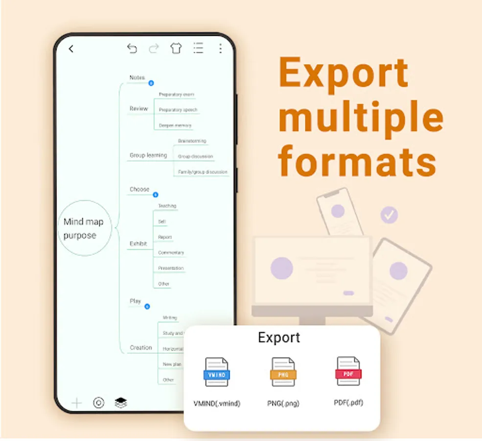 - Export mind map as png, pdf, OPML or MarkDown ๐