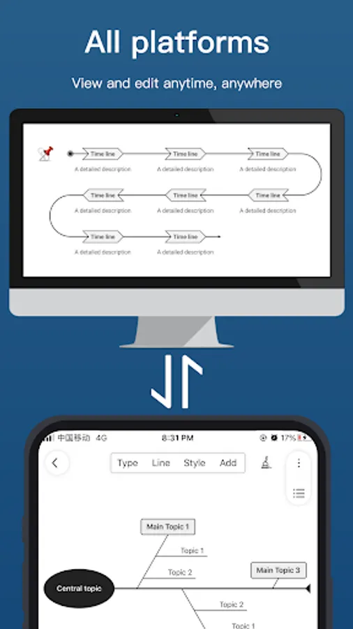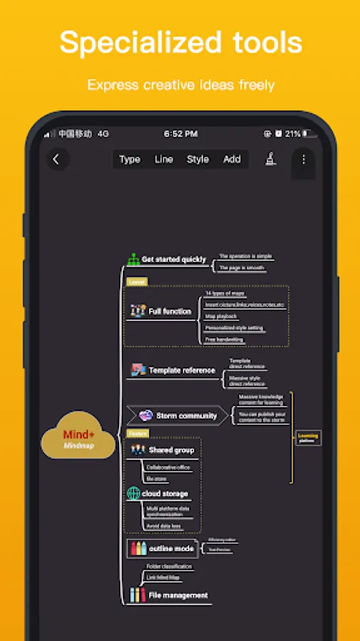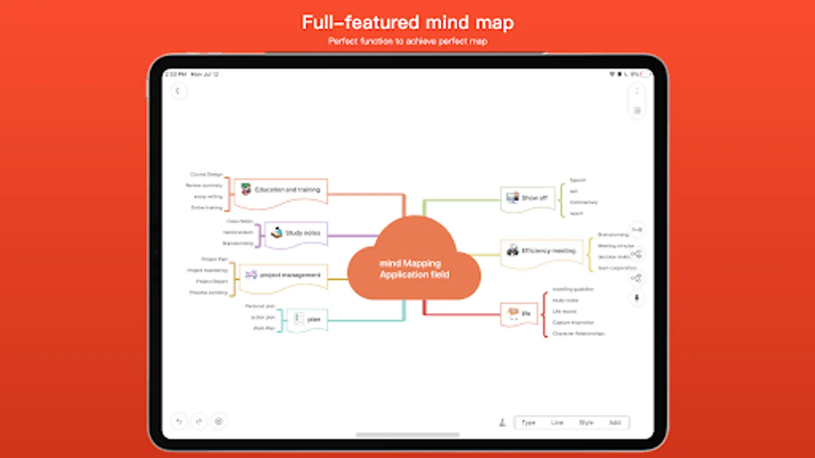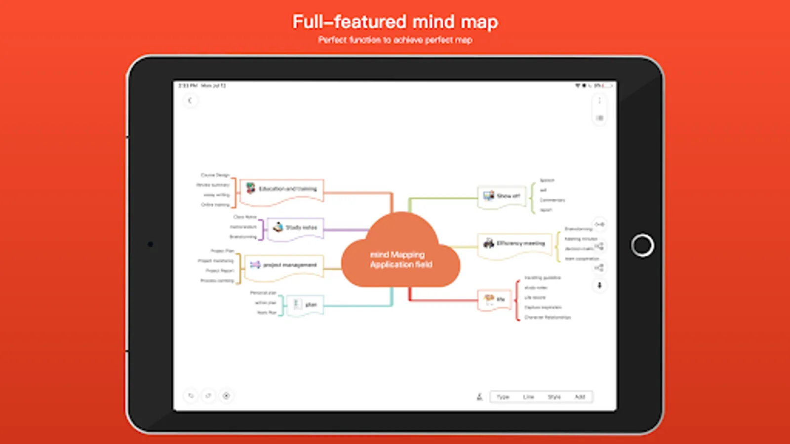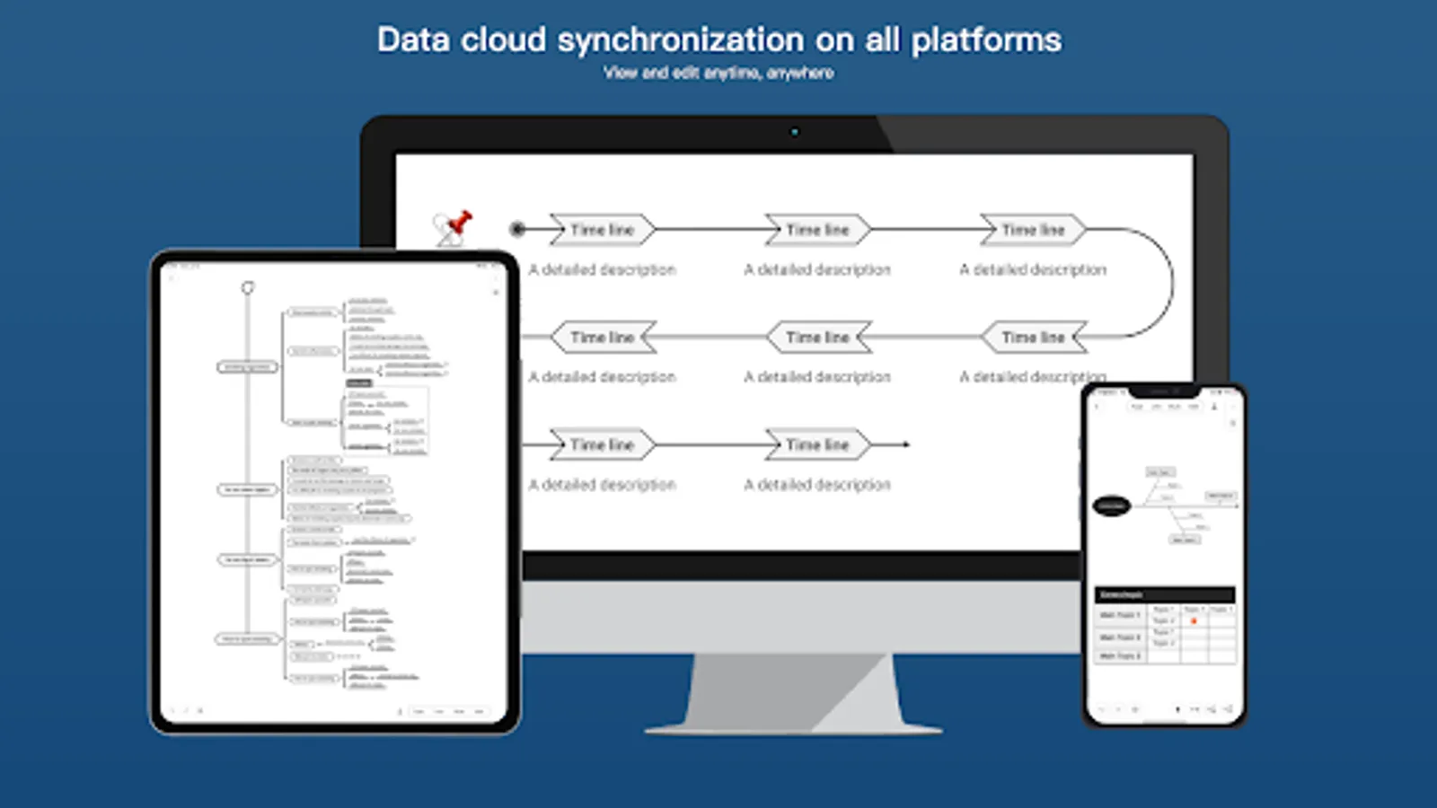 @[Support mobile phone/pad/computer/webpage], data synchronization, unlimited time and geographical use of mind maps;