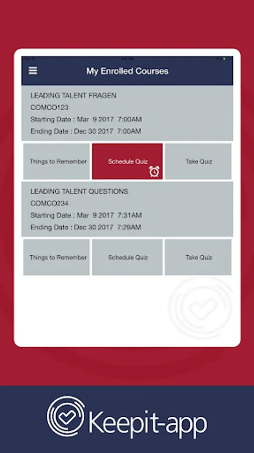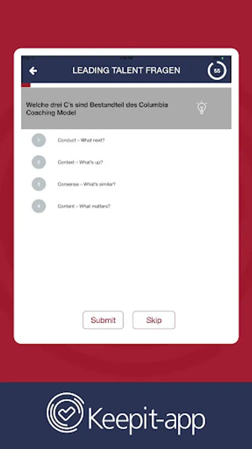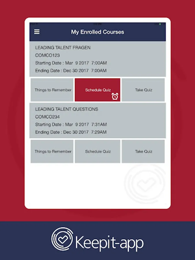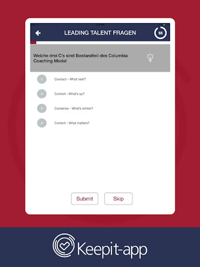 The KeepItApp mobile app can help you look up, revise, rehearse, and search what you have learned and thus stop you from forgetting valuable information. It will help you learn, recall and apply your material. How? The information or content of your training, workshop or seminar will be converted into questions. The user can then decide when and how often the app will quiz him on these questions. Either by default (trainer’s recommendation), intensive mode, or simply by rehearsing the main facts. Once a week, daily or on a monthly basis, as you wish. The app can also mix the content or different sets of questions making it more demanding. In addition, it comes with multiple services to suit your particular need: from “snooze”, to “remind-me” or “read-out-loud”, in the car, on the plane, the train, in a waiting room or hotel lobby.