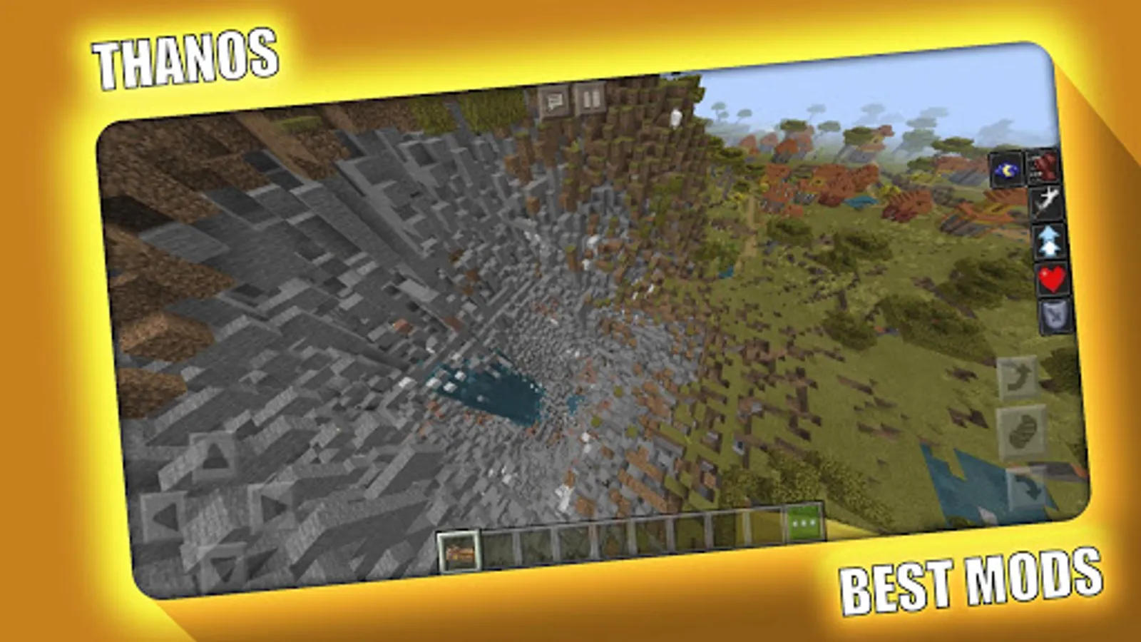 This add-on implements Thanos Gauntlet, also known as The Infinity Gauntlet, to the game. The gauntlet is a large glove which gives the person wearing it superpowers. Beat up enemies with just a few punches, run faster than most other mobs and swoop down an Ender Dragon with just one throw!