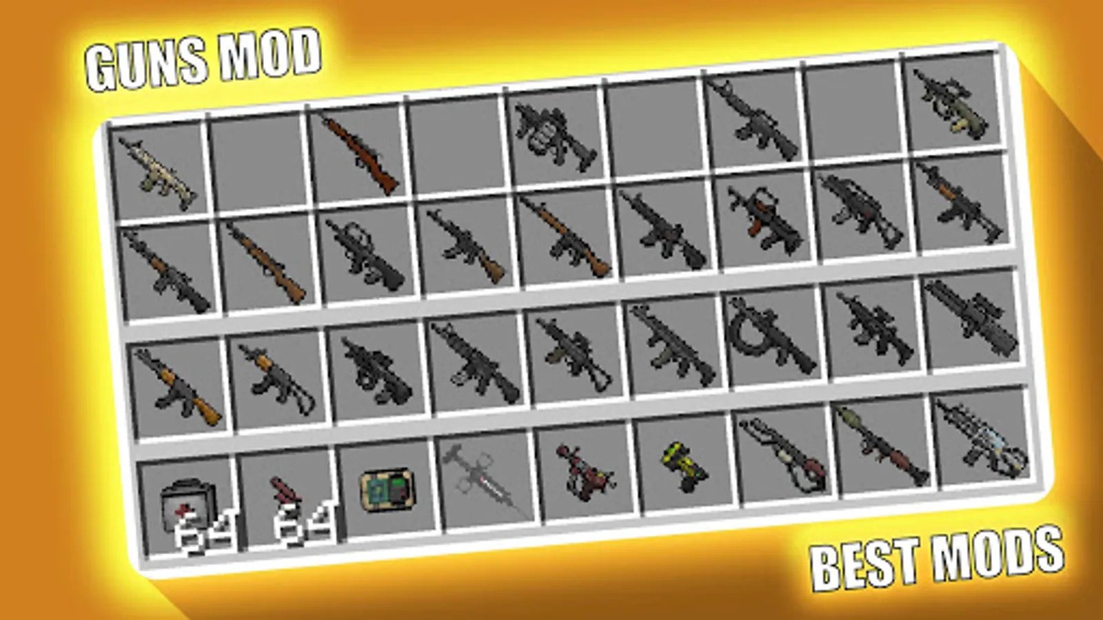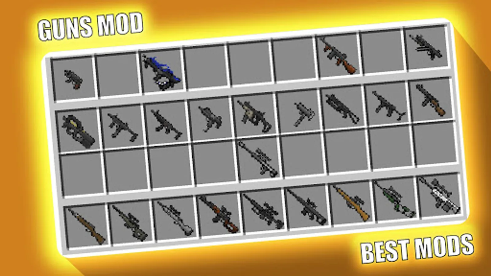 Guns Mod for MCPE (Minecraft Pocket Edition) is a mod that adds a lot of new cool guns and weapons. Fight with your enemies with new guns.