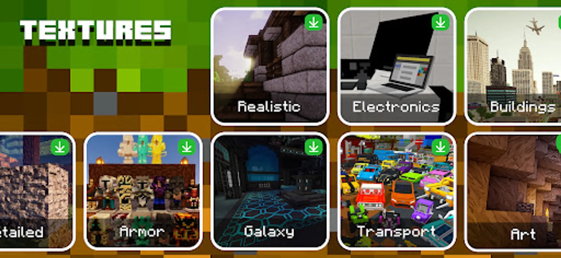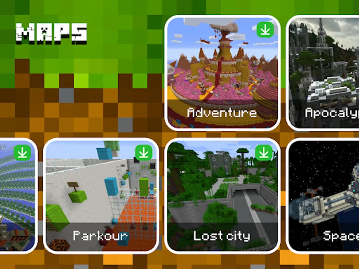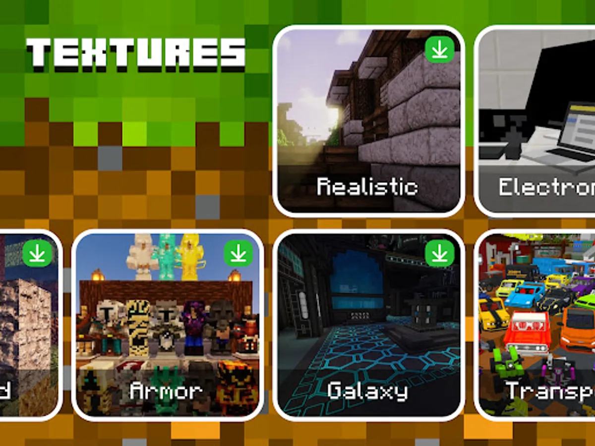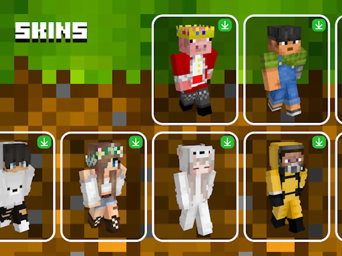 Look for what you need in a convenient thematic catalog. Review skins for your character before loading into the game. Download addons for Minecraft PE in one touch.