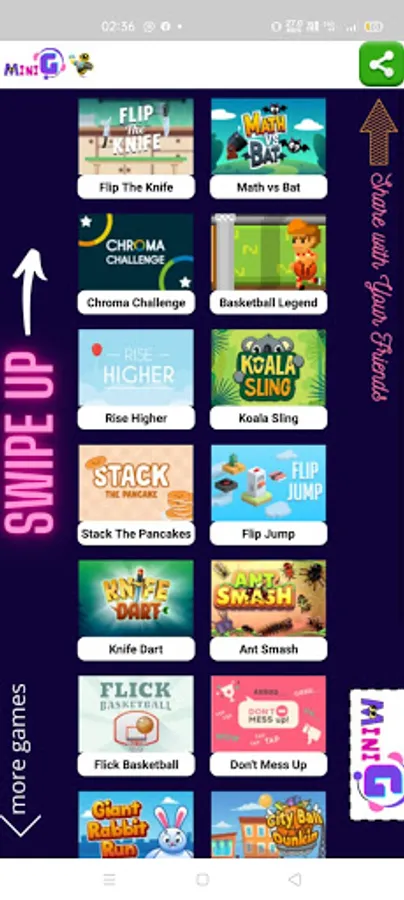 miniG offers mini-games all in one application in a lower app size. We would like to inform you that this mini games hub is not an offline application. In between mini games you can get a few ads that are placed with Google. After opening this application you have to download small games individually. These small games contain easy games which are especially made for non gamers.. You can play mini games in one app, without hassle, all you need to do is put it on full screen. For playing multiple mini-games, there is no need for installing more apps because we are offering free small games in one game. In this small games app you will get the following Games for the moment: