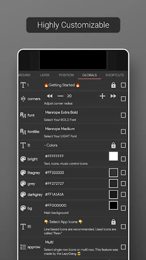 - It'll open up in KLWP. If you wanted to make changes to the theme, go to the Globals tab and make your changes there. Everything is explained with description.