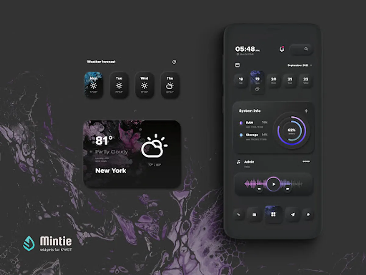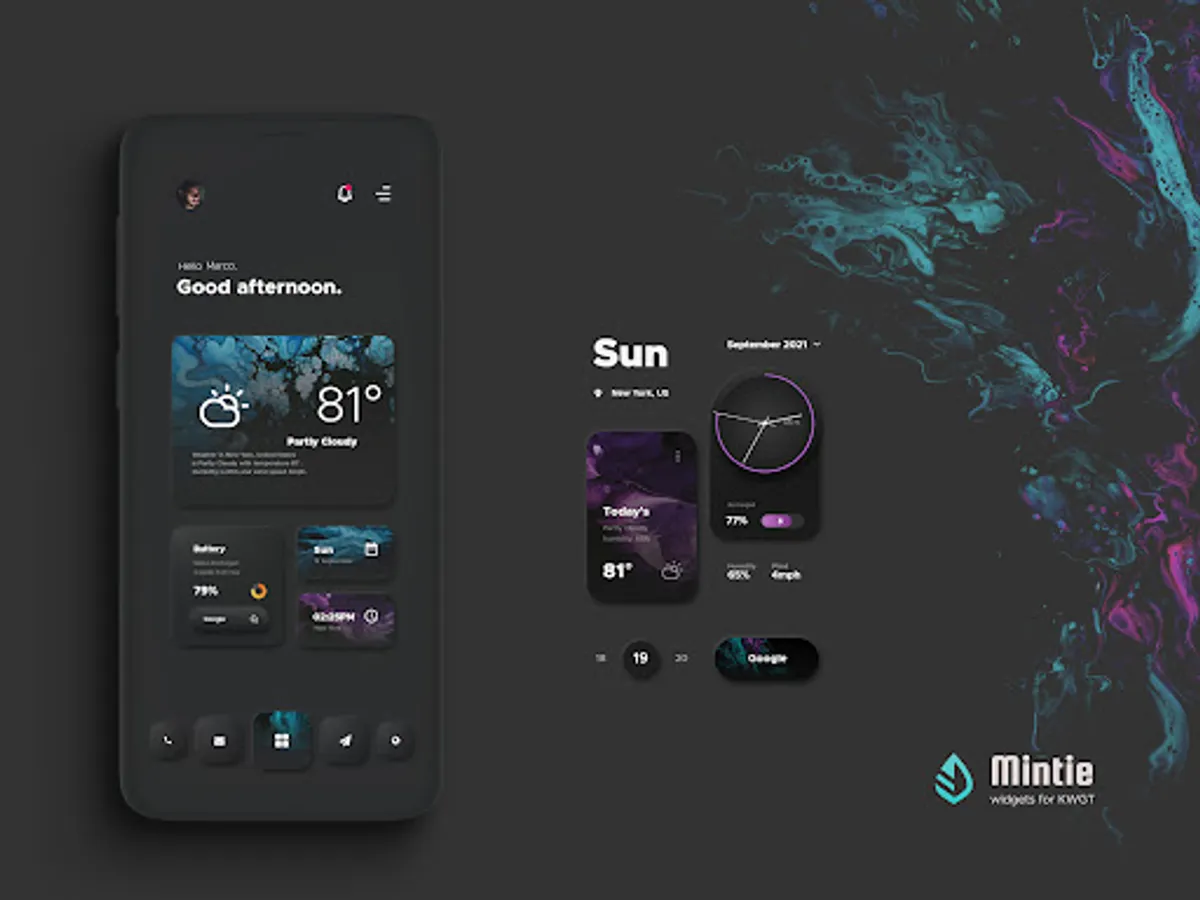 Mintie is a pack of 70 beautiful widgets for KWGT and 20 wallpapers. Widget pack is frequently updated.