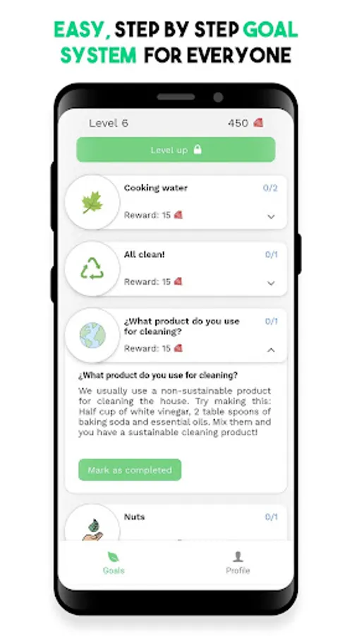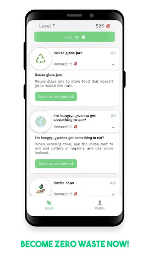 π In this app you will find many zero waste goals you can accomplish over time. You will learn how to save energy at home, have a more eco-friendly and sustainable diet, which products to buy, and what can you recycle at home, among others. π