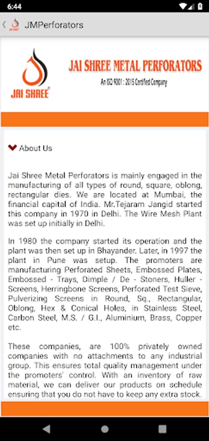 Jai Shree Metal Perforators is mainly engaged in the manufacturing of all types of round, square, oblong, rectangular dies. The promoters are manufacturing Perforated Sheets, Embossed Plates, Embossed - Trays, Dimple / De - Stoners, Huller - Screens, Herringbone Screens, Perforated Test Sieve, Pulverizing Screens in Round, Sq., Rectangular, Oblong, Hex & Conical Holes, in Stainless Steel, Carbon Steel, M.S. / G.I., Aluminium, Brass, Copper etc.