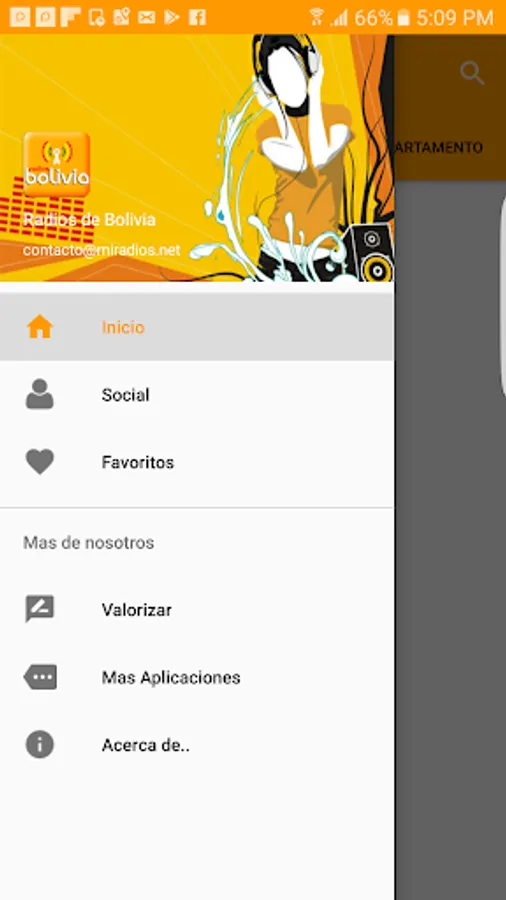 - You will have the option to share our application of Radios Bolivia on Social Networks such as Facebook, Instagram, WhatsApp, Twitter, SMS, Google plus