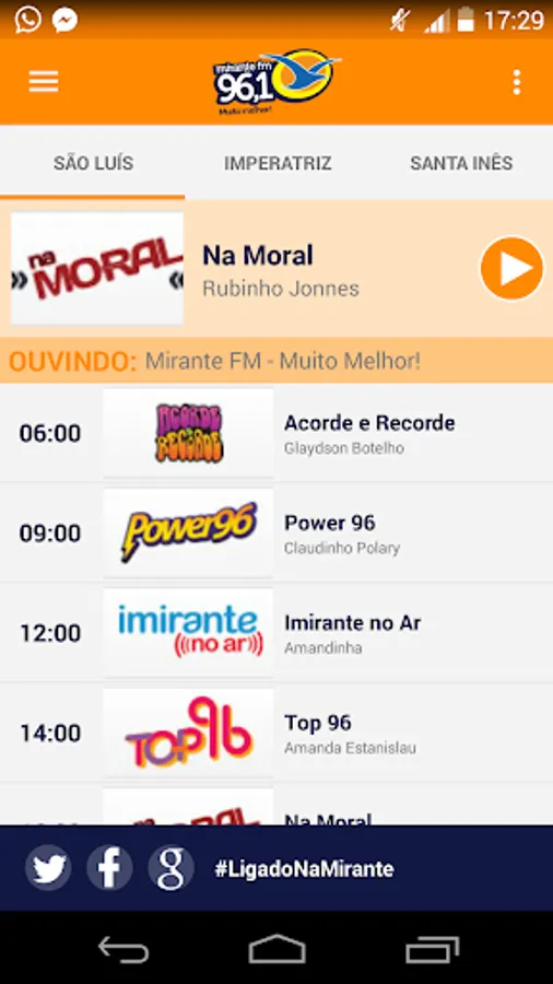The Mirante FM is in continuous process of adaptation and updating, investments, capacity building and professional renovation represent a symbiosis that keeps the FM Lookout informing accurately with credibility in the market and playing yesterday's and today's music, not to mention your 'natural habitat': Maranhão and everything produced in the arts within the state. On the phone, on the Internet at dial or events, Mirante FM is always attuned to the best music, the best bargain and the best interactivity with your listener.