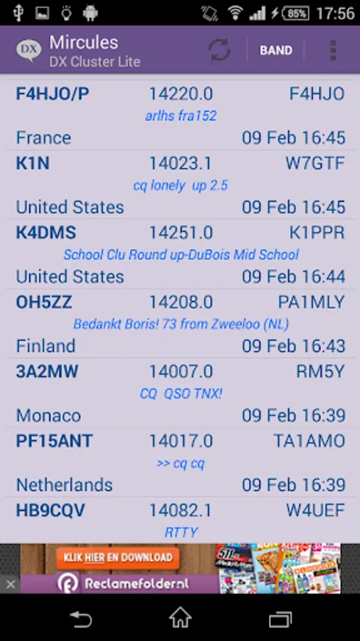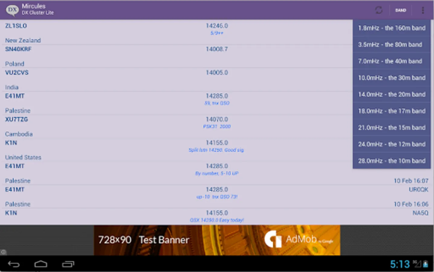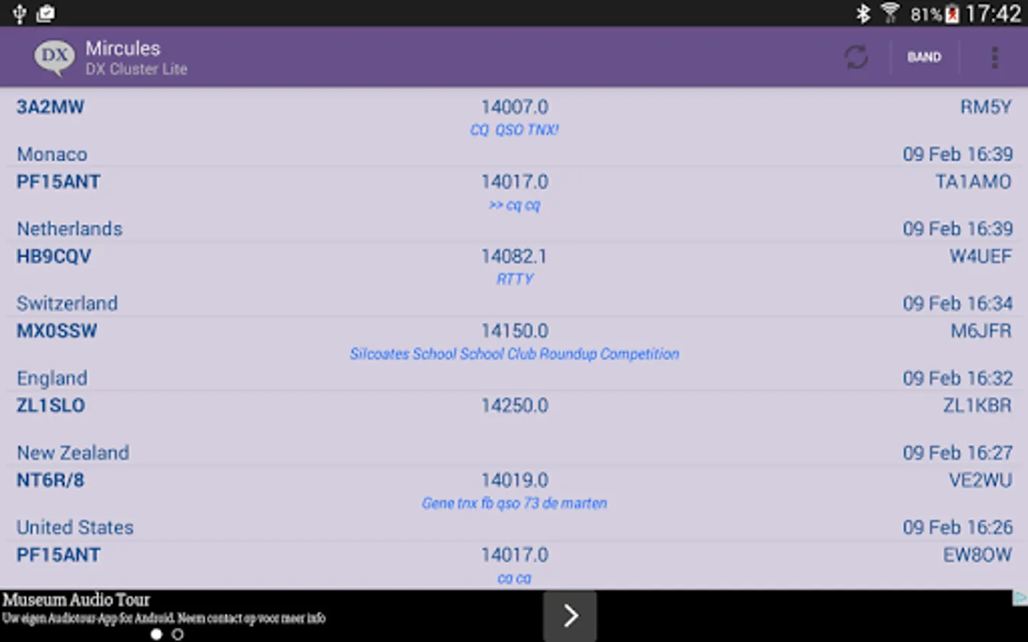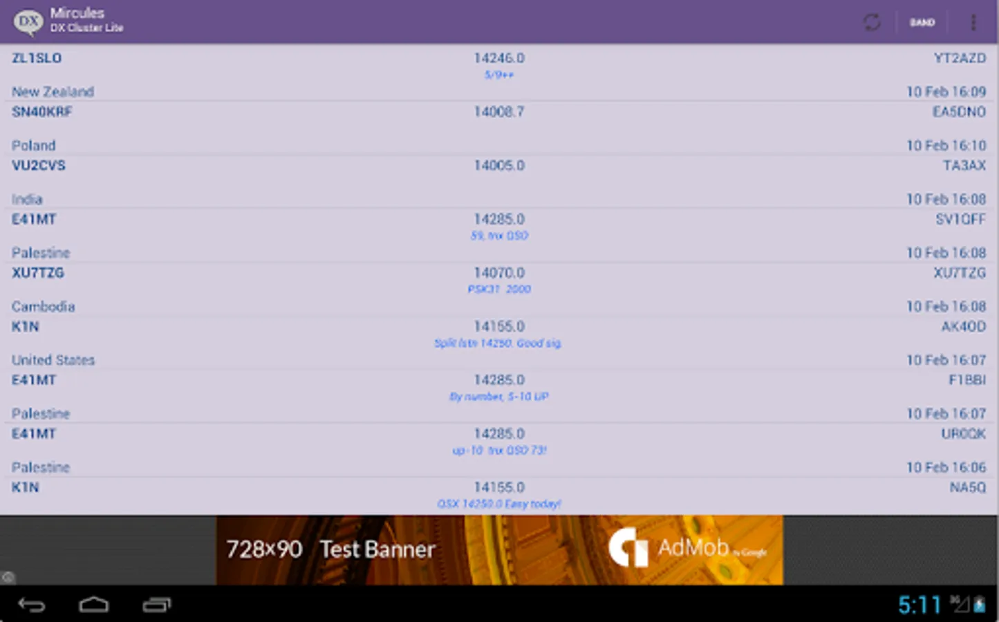 Mircules DX Cluster is an Android app that shows the info found on the international DX Cluster.
