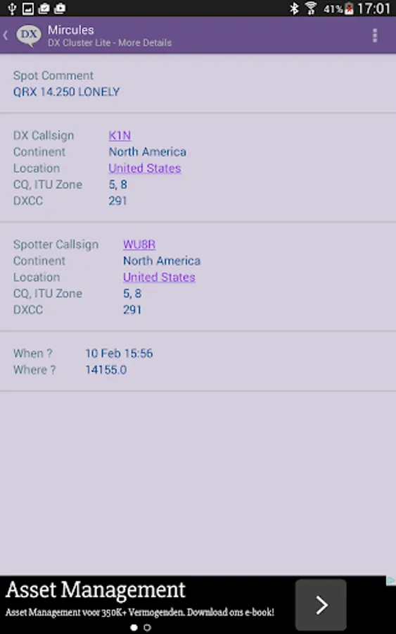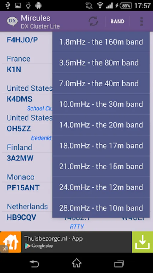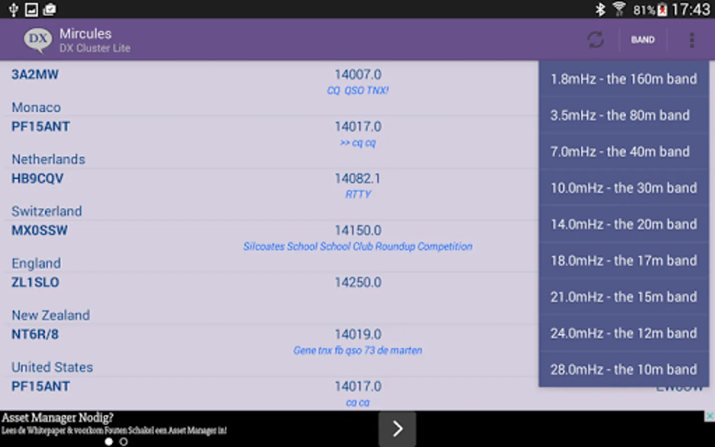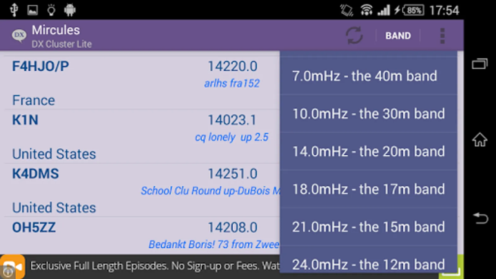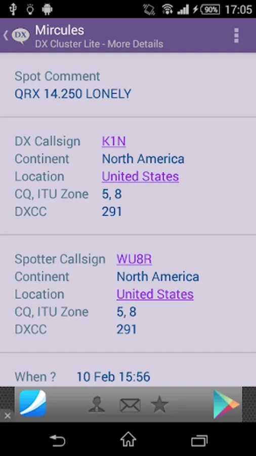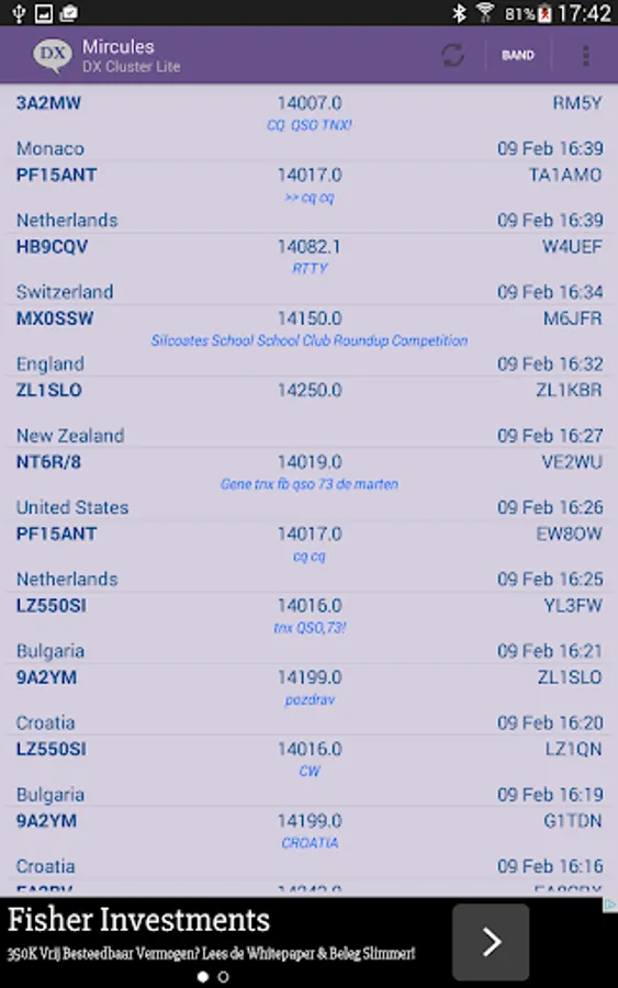 Mircules DX Cluster is an Android app that shows the info found on the international DX Cluster.