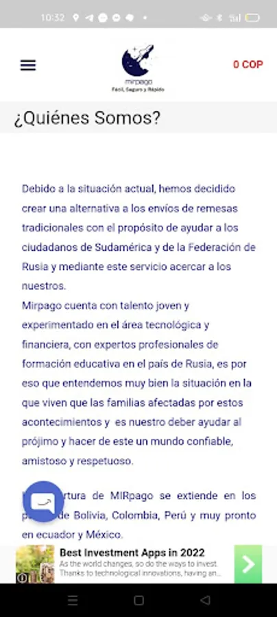 Mirpago has young and experienced talent in the technological and financial area, with professional experts in educational training in the country of Russia, that is why we understand very well the situation in which the families affected by these events live and it is our duty help others and make this a trustworthy, friendly and respectful world.