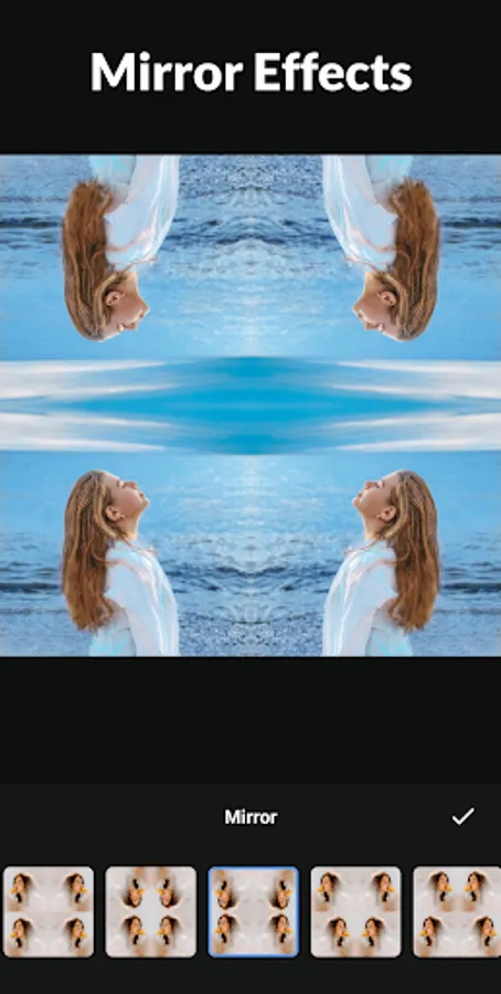 Mirror photo editor and collage maker is the best photo mirror app helps you to create pics art. Edit your mirror image with amazing photo editor tools, variety of filtters and effects. You can add reflections to generate twin photo adding mirror image effect