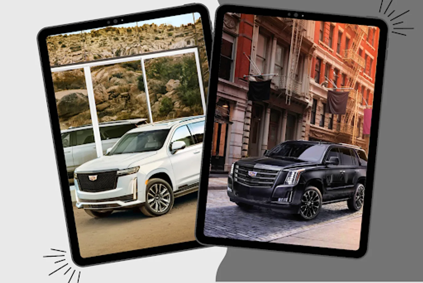 The standard 2021 Escalade is the smaller of the two models, while the Escalade ESV features a longer wheelbase and overall length, providing more space for passengers and luggage. Both 2021 Escalade models offer seating and cargo space improvements over the previous generation SUV. Take advantage of our fantastic collection of Cadillac Escalade wallpapers available on our app.