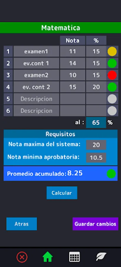 ⚫ It includes an algorithm to know if your weighted grade is good depending on how much you have advanced in the subject and how much a certain grade is equivalent.