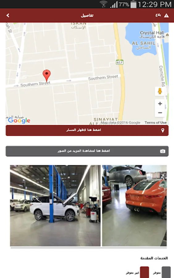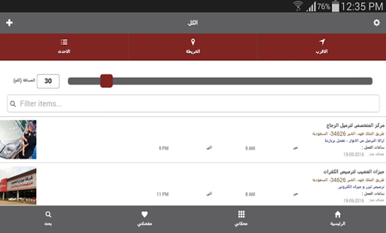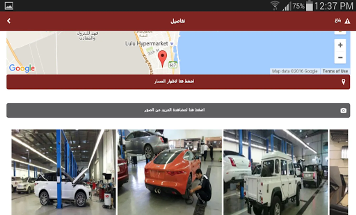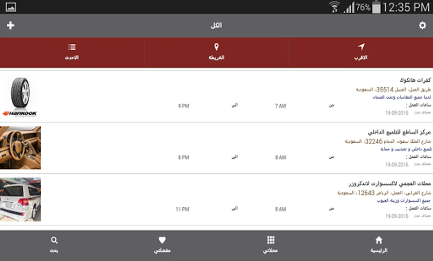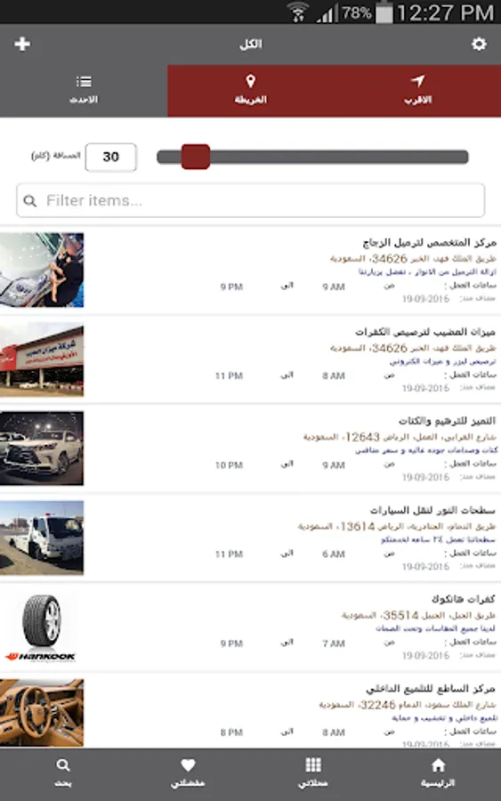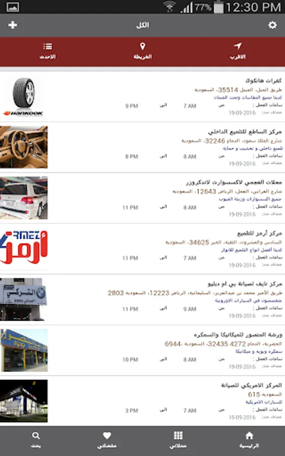 The application is a free application and is the first and largest Arabic application specialized in everything related to car services and accessories. The application works as a powerful search engine and interactive non-traditional service in several ways linking the user and the car service providers in a quick and easy way through the classification and review of services (Maintenance centers, workshops, sale of spare parts, car care centers, etc.) as a simplified and devoid of any complexity. The application also allows the user to view the search results on the interactive map, making it easier for the user to reach the service providers as quickly as possible