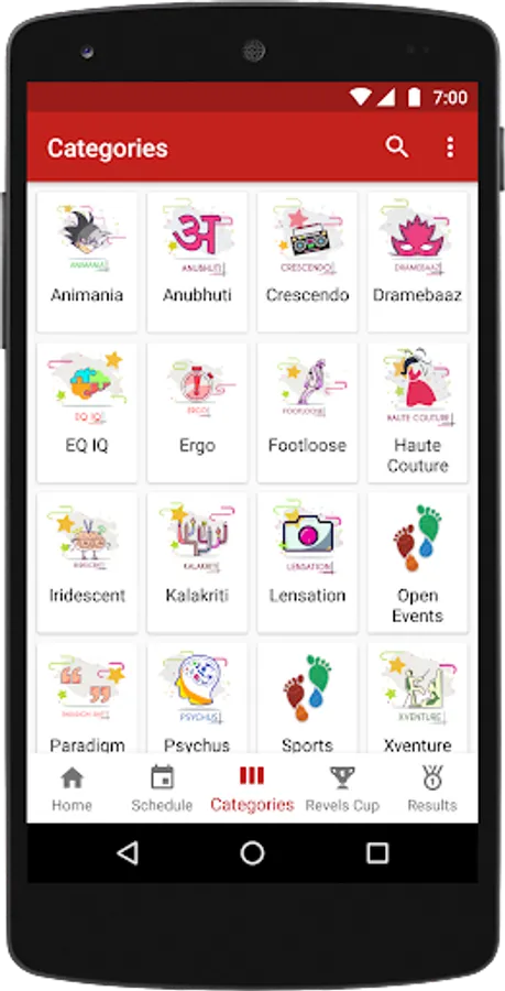 With smooth gestures and sleek transitions, this app gives every detail to the user related to Revels. Once downloaded, people can now view event info while on the go. No internet connection is required once the event data has been cached. All the events have been categorically listed for an easy search.