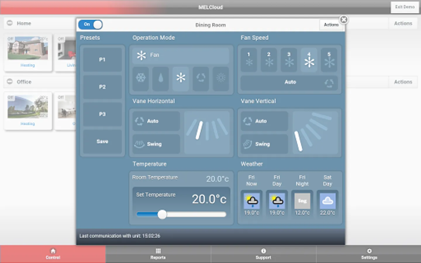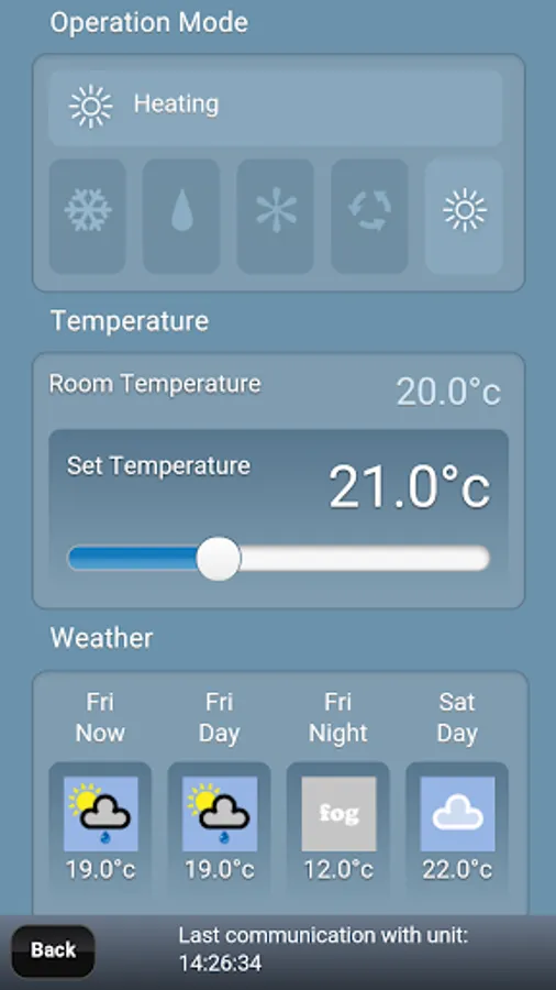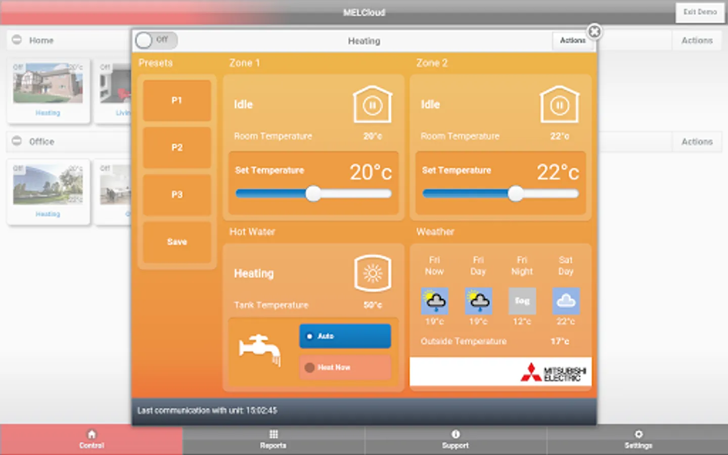 Localised information such as Weather Feeds and Customer Support contact details are also provided by the MELCloud application.