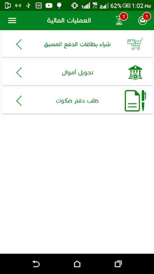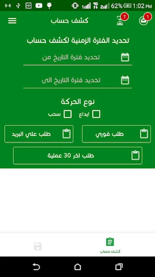 • Requesting an account statement with a choice of the type of transactions and the date, as well as you can obtain it via e-mail stamped with its detailed information.