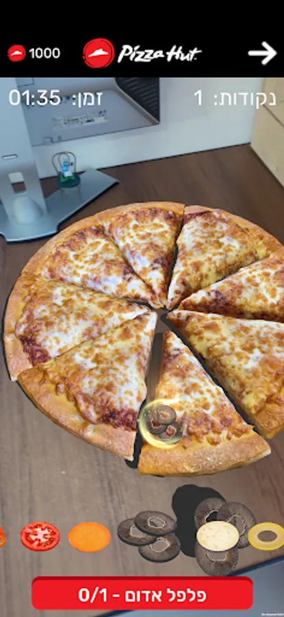 Aim the phone at the tray and a tantalizing 3D pizza will appear in front of you with a ton of toppings waiting at the bottom of the screen.