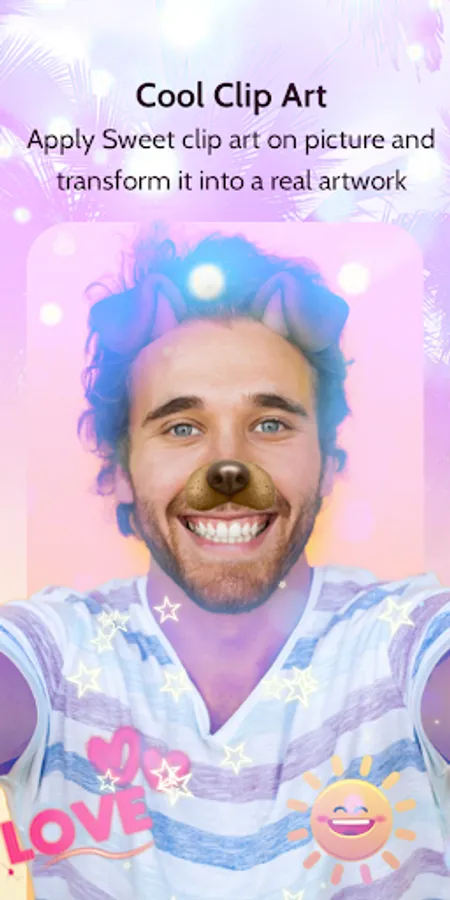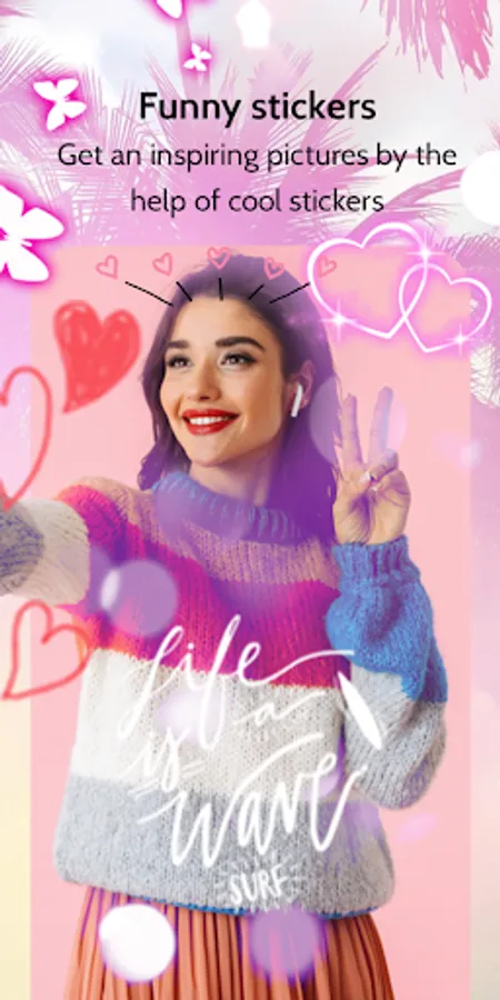 Fashion camera app offers you wide range of creative camera stickers like : decorative heart stickers , cute ears animal stickers such as rabbit – bunny – cat… also this advancing photo editor gives you the chance to apply a lot of motion stickers and beauty camera stickers !
